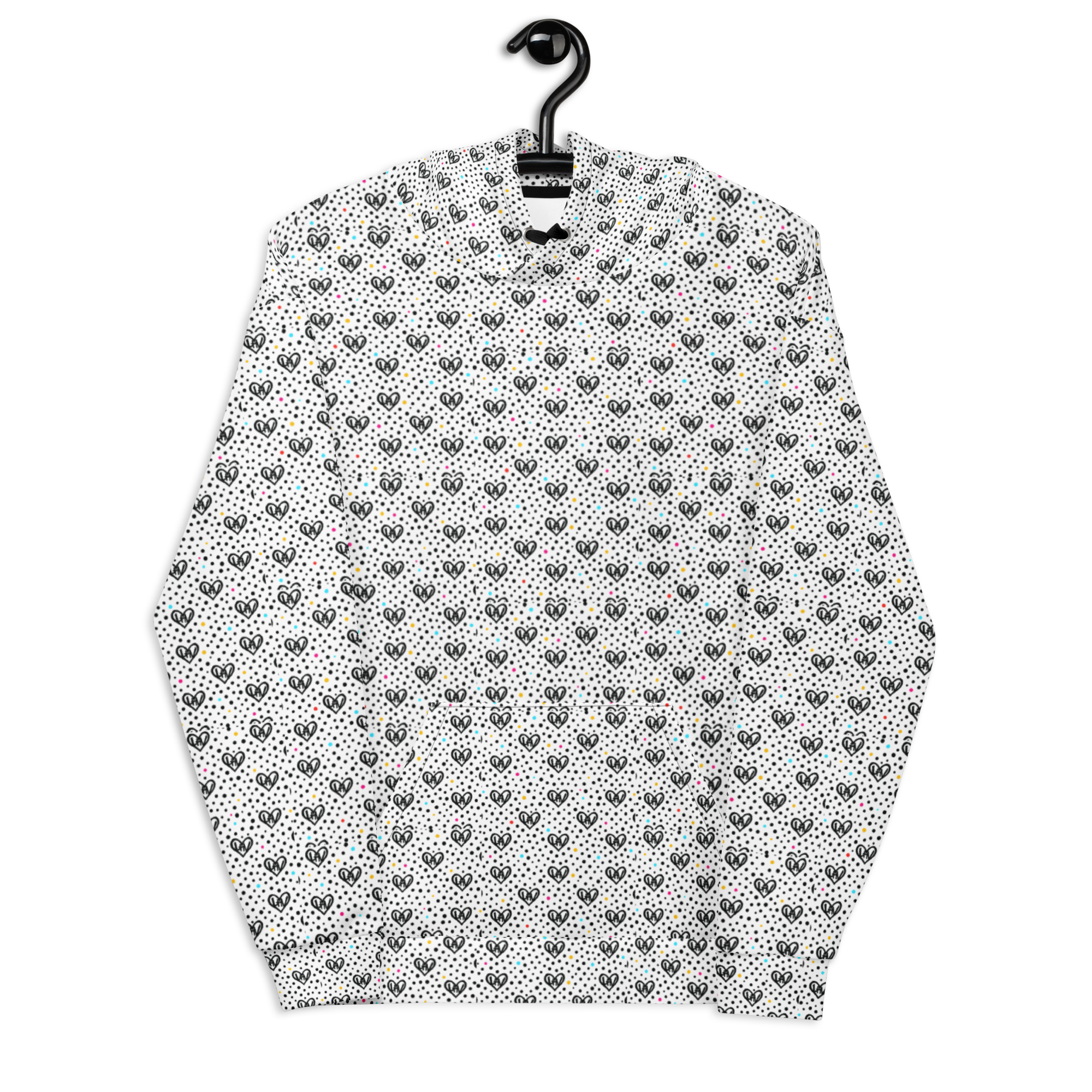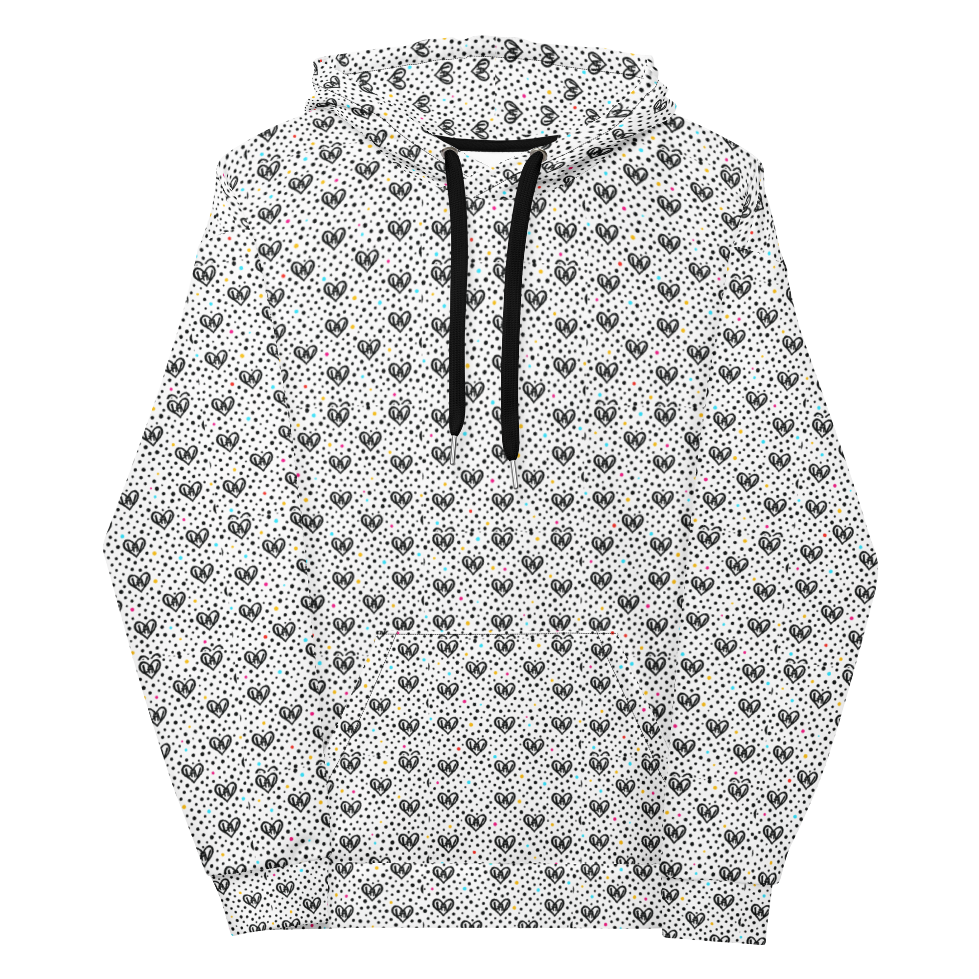 The LHV All-Over Heart Hoodie in Multicolor Pop is a classic black-and-white design infused with bold hits of color that pulse with life. Neon coral, electric teal, and sun-gold dots dance across the canvas, surrounding the signature heart logo that says it all: Love Homeschool Vibes™. It’s energy with purpose—crafted for comfort, styled for motion, and designed for those who carry light wherever they go.